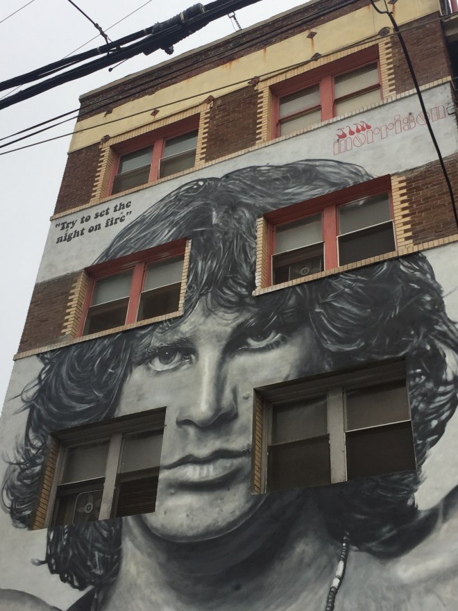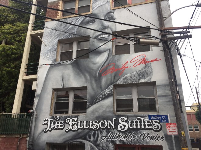 siamo quasi alla fine , ma abbiamo ancora un paio di giorni a LA . Oggi ci siamo sparati a piedi tutto il Tratto da Venice a Santa Monica andata e ritorno (niente sole r temperatura ideale) , abbiamo visto i murales di Venice , soprattutto i due di Jim Morrison , che da qui ha iniziato la sua cavalcata con i Doors , abbiamo mangiato nel nostro ristorante preferito a Santa Monica e adesso ci apprestiamo a riposare , domani co aspettano Hollywood e Bevwrly Hills….Buon Viaggio