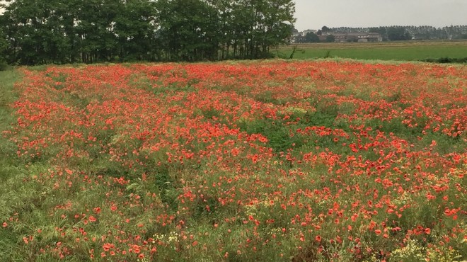 Finalmente sono riuscito a vedere il mio campetto di papaveri dietro casa, pioveva come se non avesse mai piovuto e sono tornato a casa che pesavo cinque chili di più, inzuppato, ma felice. Questa settimana dovrebbe essere piovosa, speriamo che non faccia danni, per quest’anno abbiamo dato abbondantemente credo. I papaveri sono bellissimi, sono i fiori preferiti da mia figlia e a me comunque ricordano molto la canzone di Nilla Pizzi : Papaveri e papere, che mio padre mi canticchiava mentre mi accompagnava alla scuola materna, ammazza che memoria, comunque i campi di papaveri sono rilassanti. Buon pomeriggio e Buon Viaggio