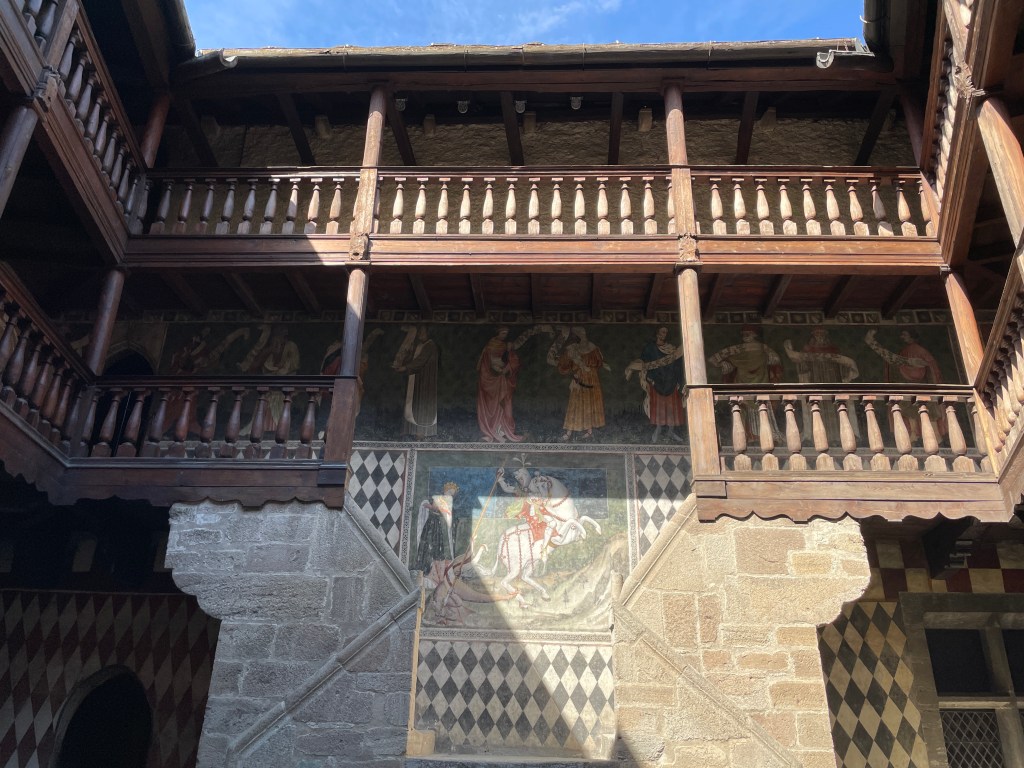 Avevamo intenzione di gustarci un’altra giornata sulla neve raggiungendo il valico del Grand St Bernard, ma complice la serata di ieri è saltato tutto, ho dormito fino alle nove, una vergogna 😂, Quindi visto che oggi è giornata di bagna càuda e polenta, abbiamo deciso di visitare il castello di Fenis,uno dei gioielli medievali della Valle D’Aosta e dell’Italia tutta. Stiamo per entrare , buona giornata e Buon Viaggio