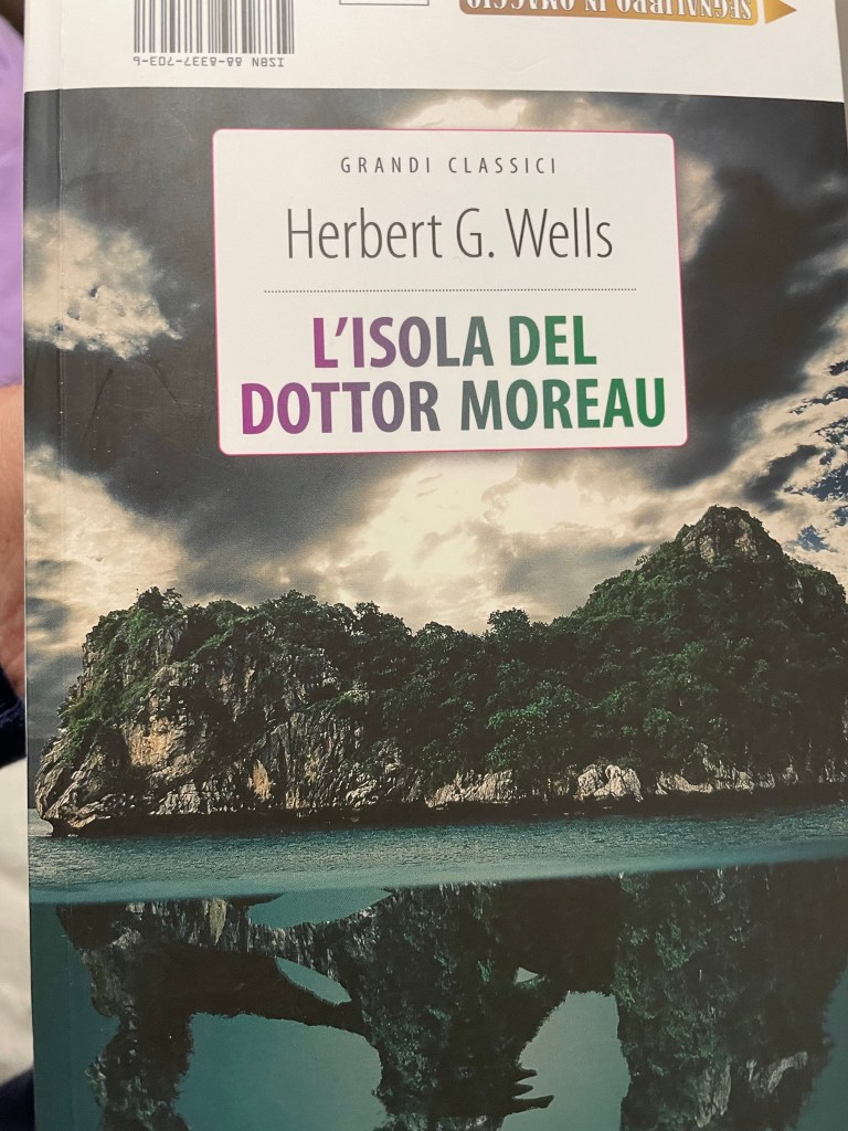 Sto finendo di leggere la macchina del tempo di Wells, ma dietro mi aspetta questo orribile storia ambientata, dopo un naufragio su un isola abitata da un sedicente scienziato e da creature terribili, mi ricordo che nel 1977, quando uscì al cinema insieme ad amici dei miei genitori, con i loro figli, fummo costretti a vedere questo film, che tanto piaceva agli adulti, ma che a noi generò nottate di incubi, nonostante il Dott.Moreau fosse interpretato da Burt Lancaster, non so se leggerò questo libro, vedremo…Buona serata e Buon Viaggio