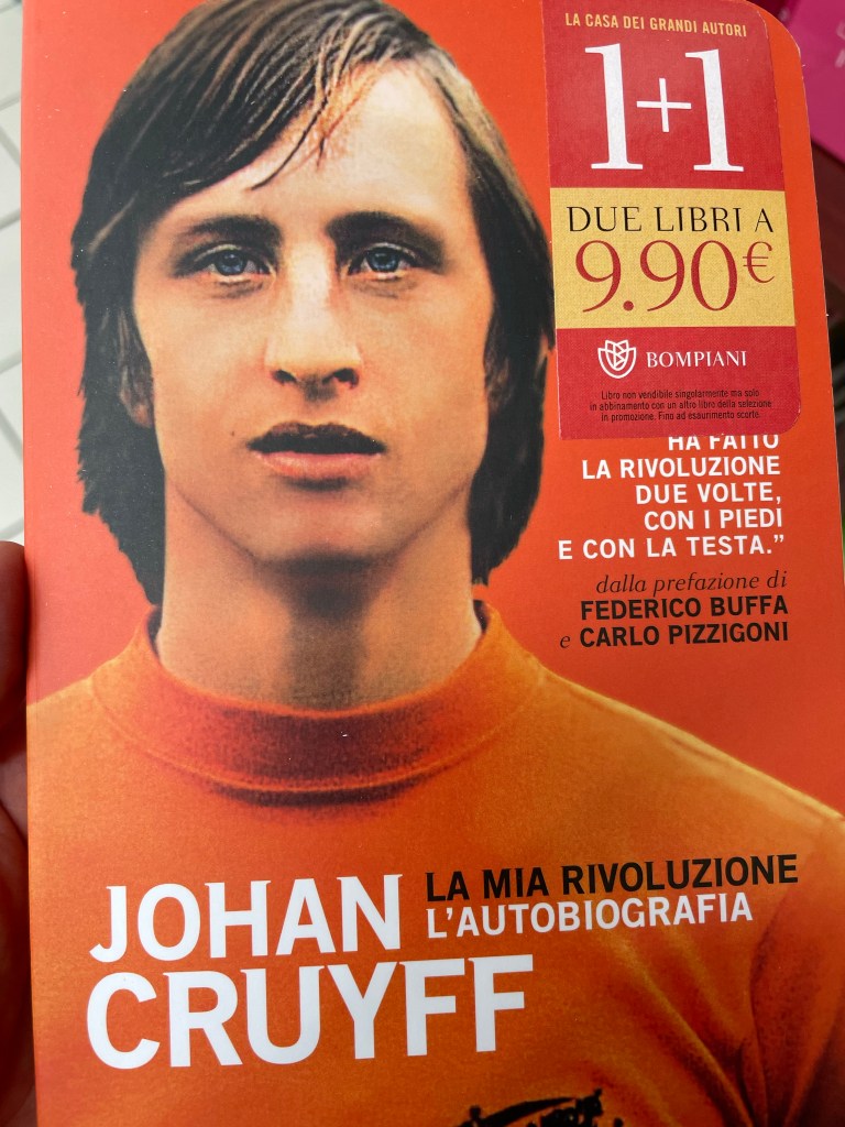 Per anni ho guardato il calcio con passione, sempre con sportività, sempre perchè è importante riconoscere la forza dell’avversario quando ti è superiore, un po come quando si rispetta l’opinione diversa dalla nostra. Dicevamo, il calcio, una passione, ci ho giocato per qualche anno, mi divertivo ,amavo i grandi calciatori, Maradona il più grande in assoluto, Platini il primo grande campione della mia Juve che ho ammirato anche dal vivo più volte, Baggio, gli olandesi del Milan, il Ronaldo nerazzurro, l’unico che si è avvicinato a Diego( secondo me ovviamente), ma quando eravamo ragazzi c’era un giocatore, il poeta del goal, così veniva chiamato il grandissimo e compianto Johan Cruijff da Amsterdam, che faceva impazzire i ragazzi di mezzo mondo( pare anche le ragazze), con i suoi dribbling e il suo modo geniale di giocare, sulle spalle la maglia numero 14, quando i numeri erano ancora dal numero 1 al numero 11. La Grande Ajax e l’Olanda del calcio totale di Michels, avevano nel 14, il punto di riferimento di una squadra zeppa di campioni, peccato che nonostante due finali mondiali non abbia praticamente vinto nulla, mentre con la sua squadra l’Ajax vinse tre coppe campioni consecutive e un paio di palloni d’oro, quando ancora il premio di France Football aveva senso. Questo libro racconta l’idea di calcio di Cruijff e la storia di un giocatore tra i più forti di sempre della storia del calcio. Buon Pomeriggio e Buon Viaggio