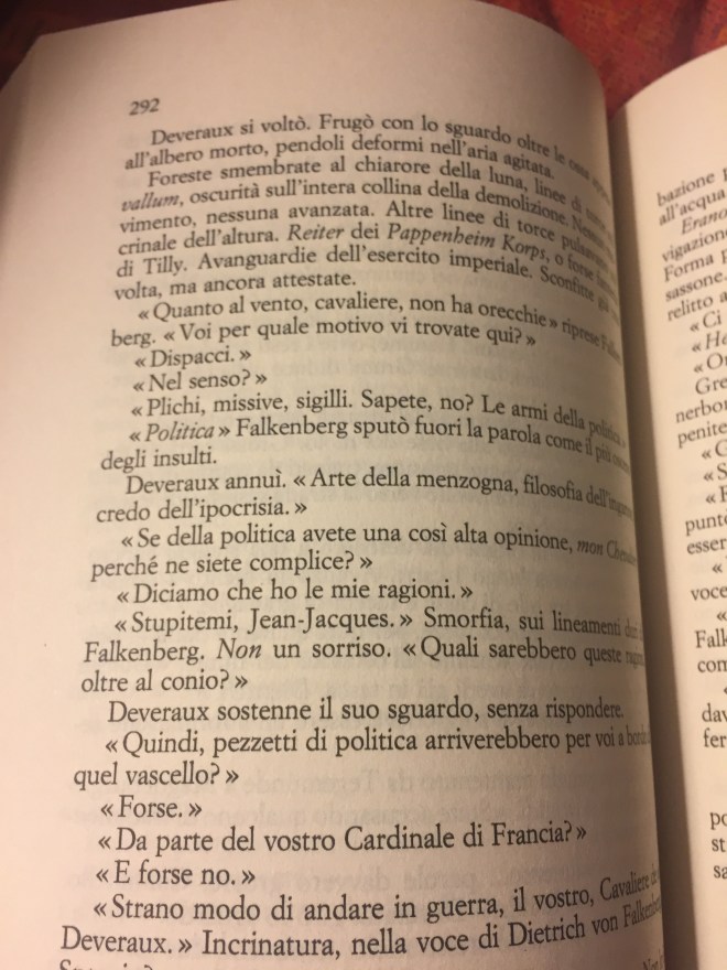 In questo lungo viaggio , ho portato due libri con me , più o meno quelli che leggo in un paio di settimane , ho letto venti pagine del primo e altrettante del secondo , lo so una vergogna , ma mi sto rifacendo e sono a metà della bellissima storia di Ellis , che racconta , da una parte le avventure o meglio disavventure , del grande Michelangelo Merisi meglio noto come Caravaggio , nel periodo romano del grande pittore , contrastato dal Carmelengo Petrucci e dall’altro un ragazzo irlandese , nipote di un alto prelato de vaticano , sulle tracce del Carmelengo Bosani le due storie sono parallele a quasi cinque secoli di distanza , chissà chi è il Carmelengo in Vaticano ai giorni nostri ….un bel libro che avevo già letto e che rileggo volentieri , buona notte e Buon Viaggio