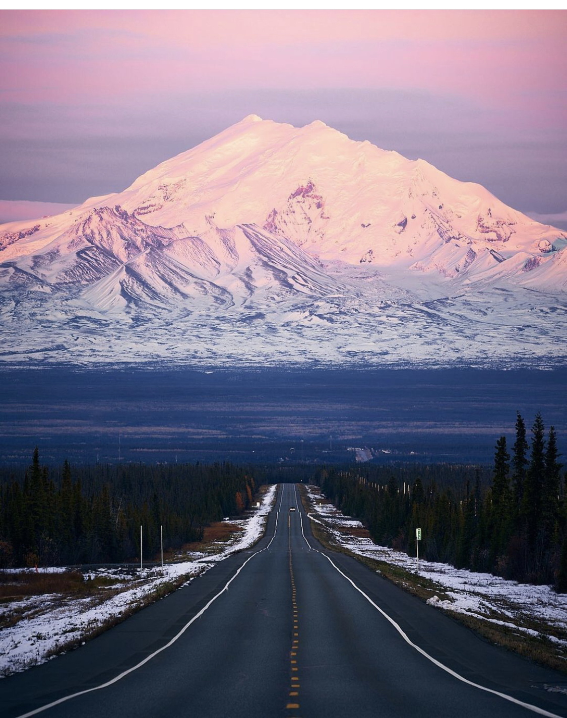 Mi viene un po da sorridere pensando che il più grande stato degli Stati Uniti d’America, in realtà fino al 1867 era terra sovietica. Un grandissimo affare quello che fecero gli americani alla fine dell’ottocento, quando comprarono lo stato dell’Alaska per soli 2 centesimi ad acro, credo che visto le guerre di questi ultimi trent’anni, lo stato dell’Alaska avrebbe scatenato assolutamente la guerra delle guerre, viste le vastissime risorse naturali che detiene. Ma qui non ci occupiamo di politica o meglio ce ne occupiamo poco, io a mia la dico sempre, non mi sottraggo, ma in questo spazio preferisco parlare della bellezza del pianeta e non della bruttezza dei suoi abitanti. Intanto questo splendido scatto della Alaska Highway è seplicemente fantastico. La pagina istagram di Travel Alaska ne offre di incredibili, in Alaska ci sono i parchi nazionali americani più estremi, qui il vasto territorio offre rifugio a milioni di animali di molte specie, lupi e orsi sono i dominatori incontrastati di tutto lo stato e anche il mare glaciale regala meraviglie come le orche e le grandi balene, per non parlare del paesaggio spettacolare, tra grandi baie con ghiacciai a picco sul mare e vette innevate praticamente tutto l’anno. L’Alaska è certamente uno dei luoghi più estremi del nostro pianeta, uno dei viaggi più selvaggi e affascinanti che si possono fare on the road, il viaggio dei sogni per noi e per molti altri, noi lo abbiamo in agenda per l’estate del 2025, chissà… Buona giornata e Buon Viaggio