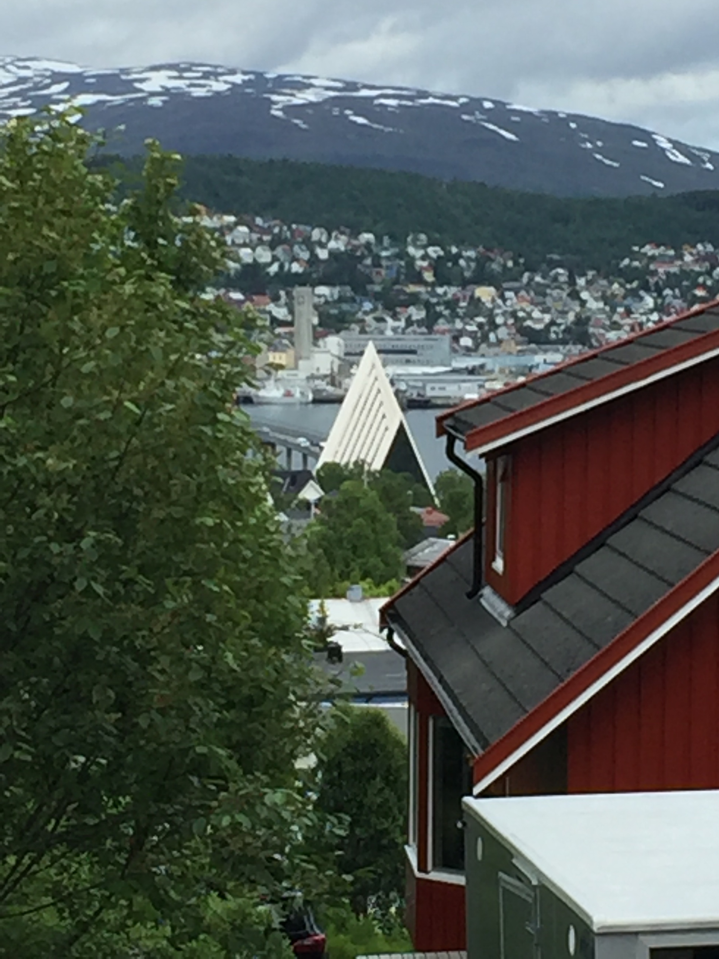 Oggi ci ha accolto una mattinata nuvolosa , ma con una temperatura gradevole , quindi dopo un abbondante colazione abbiamo deciso di attraversare il ponte per fare un giro a piedi nella zona residenziale della città del circolo polare artico . Abbiamo fatto benissimo , intanto perché è stata una bella esperienza , vedrete queste splendide case , senza porte blindate , senza inferriate alle finestre e quasi tutte senza antifurto , un modo di vivere sicuramente diverso , almeno sotto questo punto di vista . A proposito di vista , da qui la vista sulla città e sul mare artico è pregevole , una cosa da fare assolutamente a Tromsø è proprio questa , passate il Ponte e godetevi la città dall’altra sponda non ve ne pentirete , a noi è piaciuta molto . Nel periodo invernale , si viene a Tromsø per vedere l’aurora boreale e per vedere Orche e Balene , ma anche in questo periodo si possono fare buone cose e soprattutto grandi passeggiate tra le montagne sottostante , il tutto quasi sempre , in compagnia dei gabbiani ….Buona giornata e Buon Viaggio